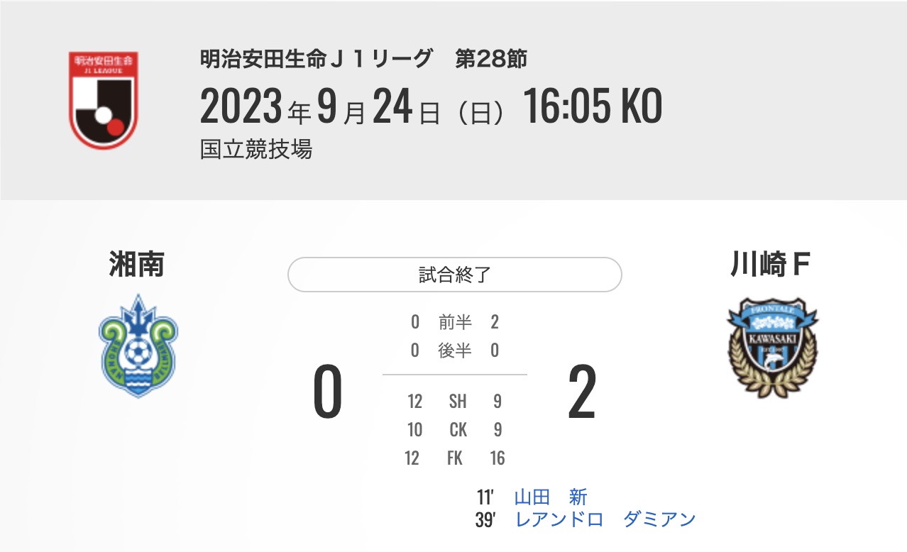 本場入場人數為54,243人,大大超過了湘南俱樂部歷史上的最高觀眾人數48,640人。 儘管湘南球員全力以赴,但最終以0-2失利,未能連勝,排名保持不變。 相反,川崎F在正式比賽中連續獲勝,取得三連勝。